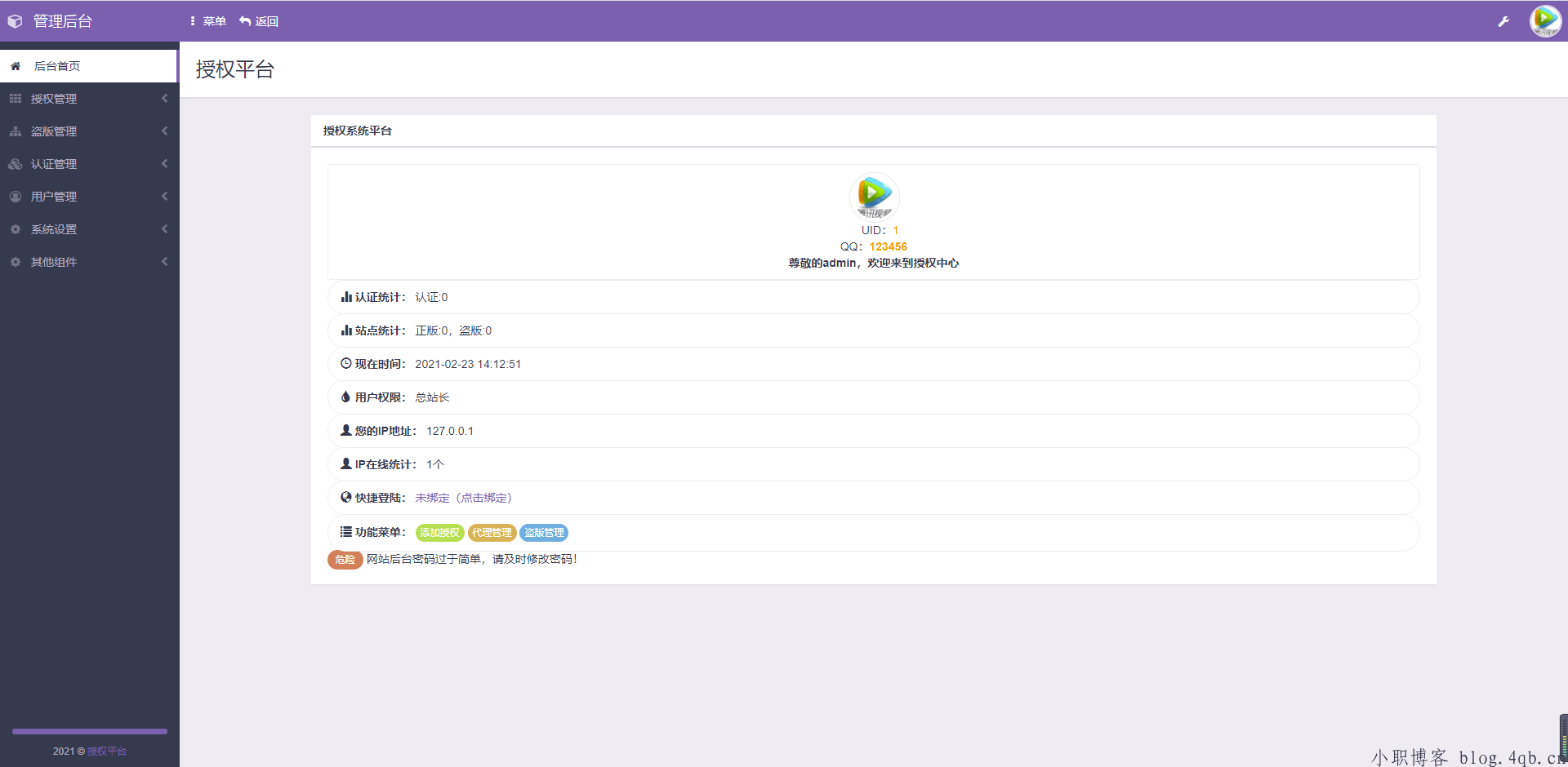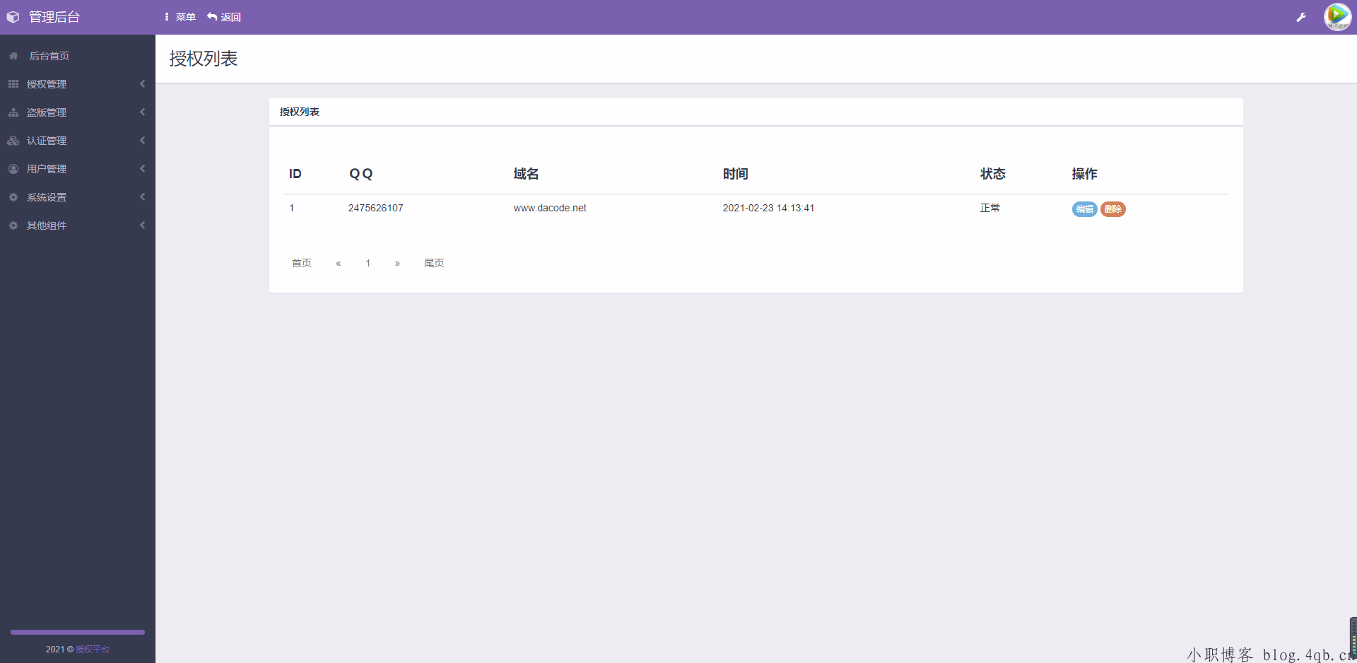 授权商后台工单系统,新增常见问题,修复上传更新包失败,修复部分用户入库问题,修复授权域名不能封禁,全新改版用户后台使用layui框架,修复模板点击查询代理按钮无反应。