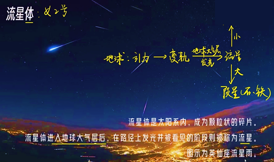 流星体:在太阳系中,环绕太阳公转的微小天体。