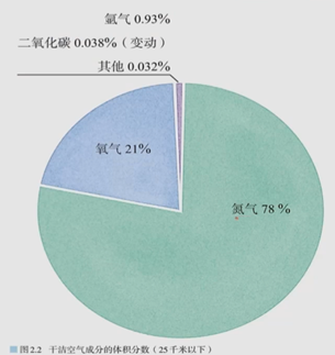 低层大气(25Km以下)的干洁空气中,氮气和氧气合占总体积的99%左右