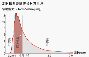 太阳辐射能量最集中的部分是可见光区,因此说太阳辐射属于短波辐射