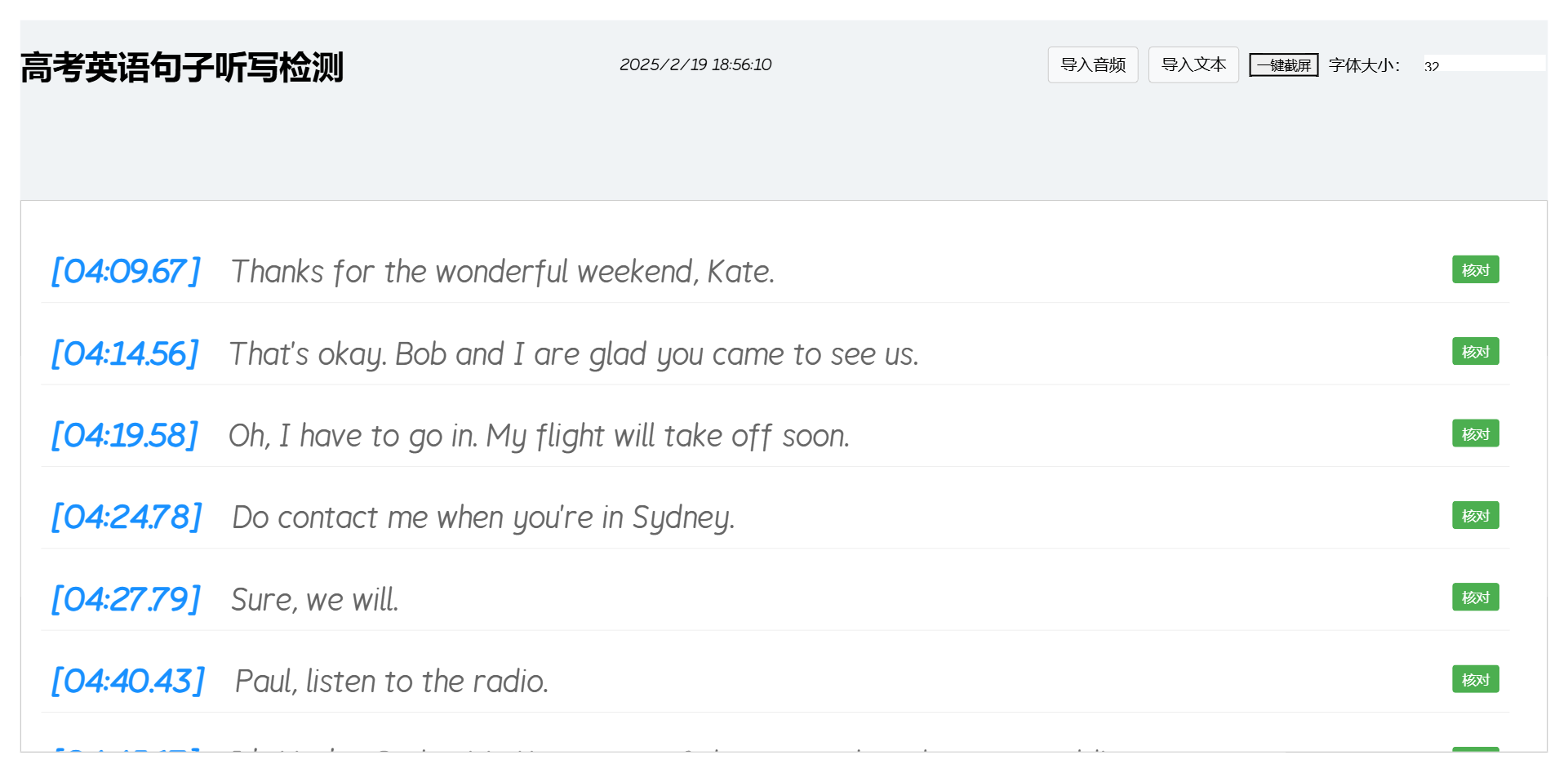提示:音频是mp3格式的都可以,带有时间戳的听力文本需要自己有