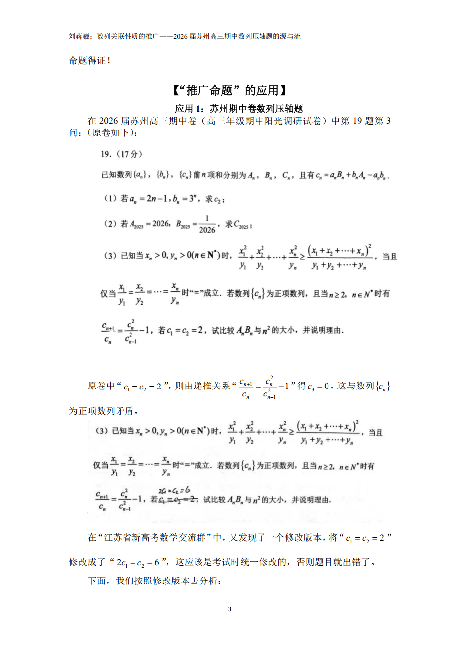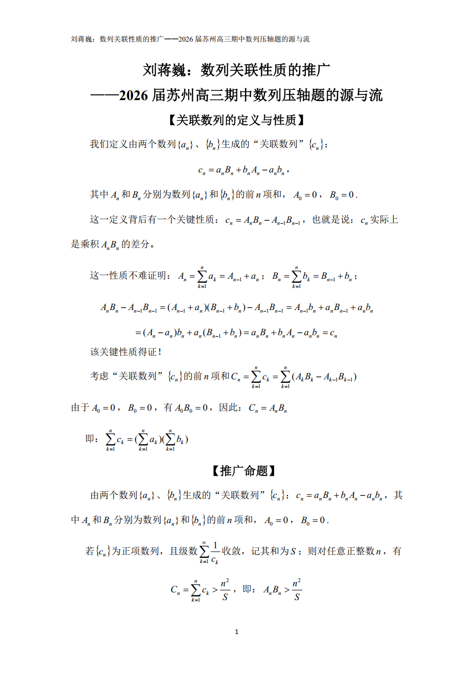 完整PDF下载:刘蒋巍:数列关联性质的推广——2026届苏州高三期中数列压轴题的源与流.pdf